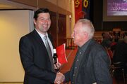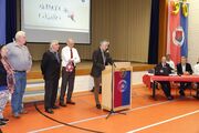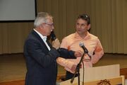 Im Anschluss überbrachte der stellv. Bezirksvorsitzende Peter Welz die Grüße des Fussballbezirks. Jürgen Heisch und Rolf Lorenz wurden dann von ihm mit der Verbandsehrennadel ausgezeichnet.