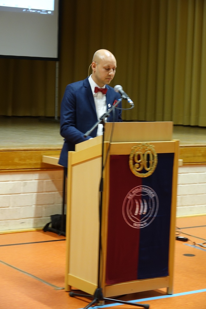 Der Vorstandsvorsitzende Vorsitzende Michael Metzger war begeistert von der Anzahl der Gäste und war sichtlich erfreut. Nach seiner Begrüßung übergab er die Versammlungsleitung an Philipp Grüninger den stellv. Vorsitzenden des SC H, der kurzweilig durch den Jubiläumsabend führte.