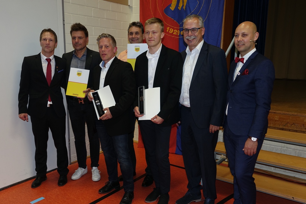 Als nächstes standen die Sportlerehrungen auf der Tagesordnung. Für die Jugend wurden Niklas Köbelin (A Jugend) und Paul Mazara (B-Jugend) für ihr vorbildliches Engagement und für die Aktiven Maurice Nobis (II. Mannschaft) und Dominik Kretschmann (I. Mannschaft) als jeweilige Spieler des Jahres geehrt.