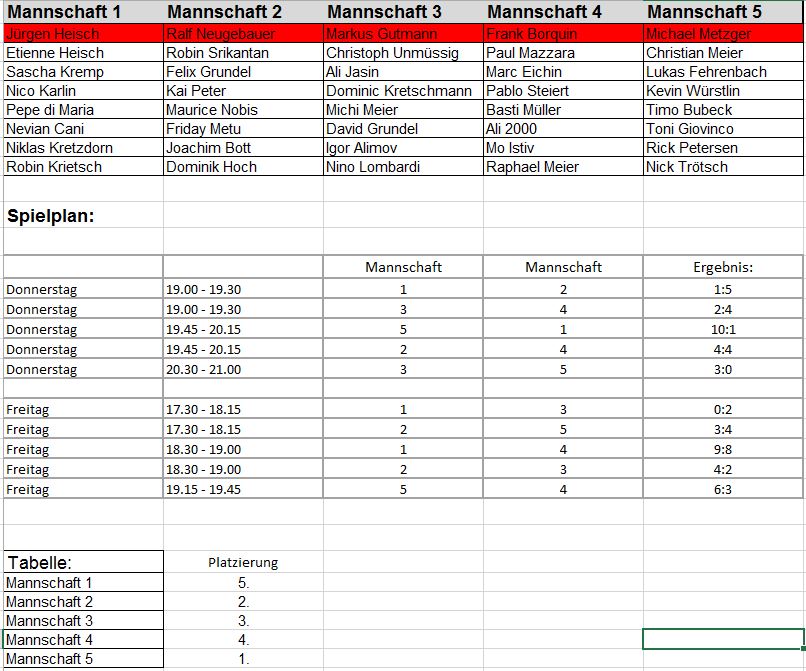 Zum Schluss war es das Spiel welches die Mannschaft von Michael Metzger gegen den Zweitplatzierten Ralf Neugebauer knapp mit 4:3 gewinnen konnte, welches die Entscheidung über den Turniersieg sein sollte.