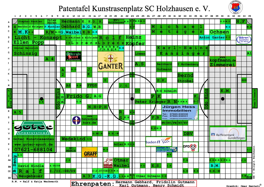In einer Patenaktion konnten und können weiterhinMitglieder, Freunde und Gönner unseres Vereines symbolisch ein Stück des Platzes als Paten erwerben. Nur durch diese großzügige Unterstützung war es uns überhaupt möglich die finanziellen Anforderungen leisten zu können.