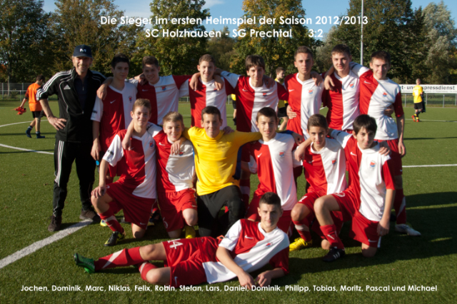 Samstag, der 13.Oktober war es soweit. Für alle überraschend, war an diesem Tag die Disziplin, mit der die Mannschaft der SG Prechtal Paroli bot, beispielhaft. Alle hielten ihre Positionen, bewahrten Ruhe im Spiel und Abspiel und waren von einer nicht gekannten Laufbereitschaft. So hatten wir nach mehr als einer halben Stunde immer noch kein Gegentor, was zu diesem Zeitpunkt Rekord war. Keiner war unaufmerksam und sollte doch ein Spieler der SG Prechtal an seinem Gegenspieler vorbeikommen, war ein Spieler des SC Holzhausen, da, und half. Das Mittelfeld rückte fast immer nach und so waren die Räume für unsere Gegner sowieso eng. Was aber ganz anders zu allen bisherigen Spielen war, die Mannschaft spielte nach vorne. Es wurden keine blinden Pässe nach vorne gedroschen, nein, man sucht den Mitspieler und hatte mehr als einmal klasse Kombinationen, vor allem über die Außen.