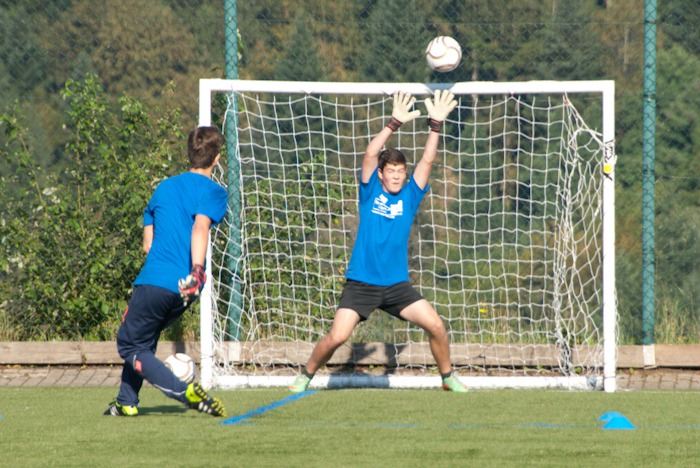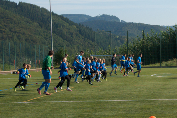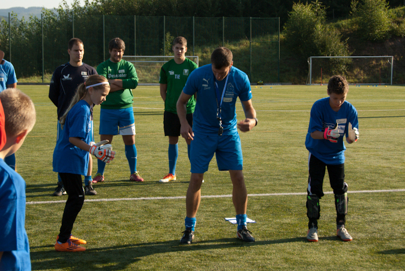Jugendleiter Jürgen Hess hielt sein Versprechen und war am ersten Septemberwochenende mit den Torspielern des SC Holzhausen für ein eintägiges Torwartcamp in Bad Peterstal-Griesbach. Sehr früh ging es in Holzhausen los, um pünktlich 8:45 Uhr vor Ort zu sein. Jeder der Jungs bekam gleich zu Beginn ein T-Shirt und war von da an praktisch immer unter „Strom“. Die hervorragende Betreuung, die Kompetenz der Trainer, die perfekte Organisation und das perfekte Trainingsmaterial, sorgten für einen kurzweiligen, aber sehr anstrengenden Trainingstag. Die Jungs wurden in kleine Gruppen zu vier bis sechs Teilnehmer eingeteilt und jeweils von einem Trainer betreut. Von Anfang an waren alle konzentriert, diszipliniert und kameradschaftlich von Station zu Station unterwegs. Grundtechniken wurden genauso konzentriert und zielstrebig erarbeitet wie alle Übungen zur Ausdauer oder Koordination. Alle Übungen waren bestens vorbereitet und entsprechend der Altersstruktur der einzelnen Gruppen aufgebaut. So hatten sowohl die Jüngsten im Alter der F- und E-Jugend einen unvergesslichen Tag, wie auch die Ältesten der B- und A-Jugend. Durch kleine Wettbewerbe wurden die Spannung und die Bereitschaft mitzumachen, ständig hoch gehalten. Die Trainer achteten akribisch darauf, dass regelmäßig genug getrunken und Obst gegessen wurde, was bei dem sonnigen und warmen Wetter notwendig war, um den ganzen Tag gut durchzustehen. Die Mittagspause war dann dringend notwendig, um mit Spaghetti Bolognese und isotonischen Getränken die Grundlage für die Arbeit am Nachmittag zu schaffen. Simon Panter und seine Trainermannschaft konnten alle Teilnehmer bis zum Ende der Veranstaltung hoch motivieren, so dass alle mit vielen neuen Erfahrungen und vielen Erfolgserlebnissen den Camp-Tag beenden konnten. Zum Ende des Tages gab es eine kleine „Siegerehrung“. Fast alle Kinder und Jugendliche hatten über den Tag verteilt eine Übung als Bester abgeschlossen oder einen Wettbewerb gewonnen. So konnte sich jeder einen kleinen Preis aussuchen, um eine Erinnerung an diesen tollen Tag zu haben. Die Jungs des SC Holzhausen waren so begeistert, dass sie bei einem der nächsten Camps wieder dabei sein wollen. Jugendleiter Jürgen Hess versprach, sie und die anderen Torspieler, die urlaubsbedingt, nicht teilnehmen konnten, für das nächste Camp wieder einzuladen. Der SC Holzhausen wird auch dann wieder die Kosten für die Ausbildung seiner Torspieler übernehmen.