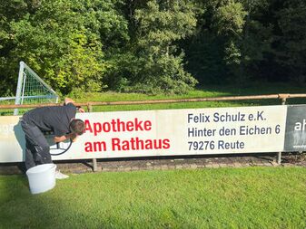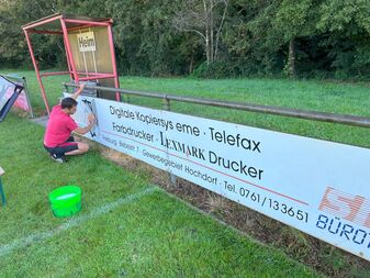 Pünktlich vor dem Tag der Ehrenmitglieder im Rahmen der Heimspiele gegen den FV Nimburg wurden mit viel Einsatz die Werbebanden gereinigt, so dass diese zukünftig unseren Sponsoren weiterhin eine optimale Werbefläche bieten können.