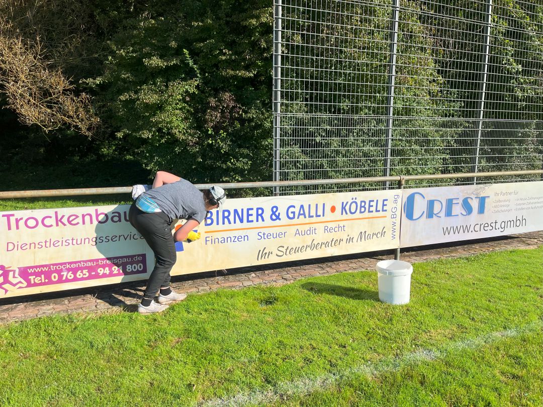 Unser Förderverein hat am Samstag, den 20.09.2025 eine Aktion zur Reinigung der Werbebanden am Rasenplatz durchgeführt.