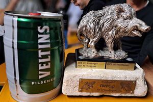 Bei dem ein oder anderen Meter Bier wurde der Erfolg ausgiebig gefeiert und der begehrte Eber-Pokal in Empfang genommen.