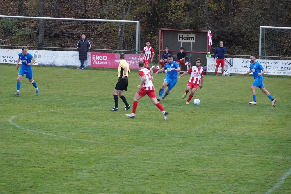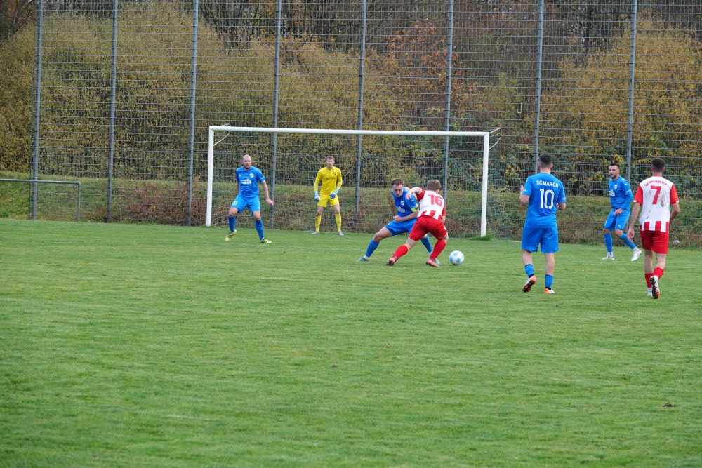 Das Spiel ähnelte zu Beginn dem der zweiten Mannschaft. Abgesehen von einer Großchance von Holzhausen, die der Marcher Keeper klasse parieren konnte, war es ein Spiel auf Augenhöhe. Ende der ersten Halbzeit wurde ein Marcher Spielzug im Mittelfeld schlecht verteidigt. Der Ball fand seinen Weg auf die Außenbahn und wurde Richtung Holzhauser Tor geflankt. Aufgrund schlechter Zuordnung nutze der SC March die sich ihm bietende Chance zum 0:1 in der 39. Minute.