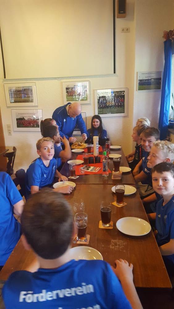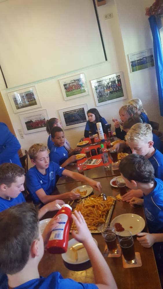 Anschließend freute sich das Team über die Einladung zum Pommes essen von Vorstand Michael Metzger. Dies war der Lohn für den Derbysieg gegen die SG Reute am vergangenen Wochenende. Herzlichen Dank für die Einladung!!!