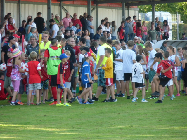 Am Sonntag, 07.08.2016, durften die F-Jugend Kicker des SC Holzhausen als Einlaufkinderbeim Kaiserstuhl-Cup in Bahlingen ran. Unsere Jungs, und auch Mädels, durften mit den Spielern des Offenburger FV einlaufen, welche an diesem Tag ihre Partie gegen die Mannschaft des SV Endingen zu bestreiten hatten. Nach dem EInlaufen mit den großen Kickern bekamen alle Kinder Gutscheine für ein Getränk und einen Snack. Höhepunkt an diesem Tag war dann aber doch das das spätere Spiel des SC Freiburg gegen den Gastgeber aus Bahlingen. Hautnah konnten unsere Nachwuchskicker die Profis in Augenschein nehmen und später ging es dann, direkt nach Abpfiff, auf die Jagd nach Autogrammen und Bildern von bzw. mitdenProfis. Wieder mal ein toller Tag für unseren Nachwuchs und an dieser Stelleein Dank an den Bahlinger SC, der diese Aktion ermöglichte!