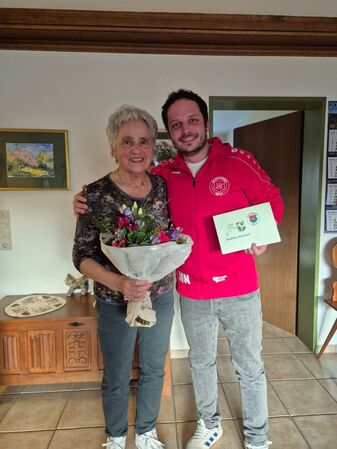 Der langjährigen aktiven Hallensportlerin durfte Maurice Nobis die Grüße und Glückwünsche des Vereins überbringen. Elfriede ist Mitgründerin der Mitte der 70er Jahre gestarteten Fitnessgymnastik.