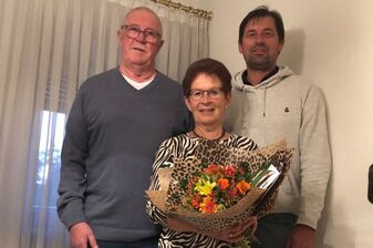 Rosmarie Waibel feierte den 75. Geburtstag. SC H und Förderverein gratulierten, Ehrenvorsitzender Hermann Gebhard und der ehemalige Vorstandsvorsitzende (des SC H und des Fördervereins) Bernd Strobel überbrachten die Grüße, Glückwünsche und ein Präsent.