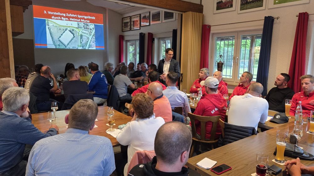 Ein großes Thema ist das geplante neue Gewerbegebiet in Holzhausen. Im Zuge dessen wird eine Umfahrung gebaut, die auch die Zufahrt zum Gelände des SC Holzhausen verändern wird. Bürgermeister Helmut Mursa stellte der Versammlung die aktuellen Planungen der Gemeinde March vor und beantwortete Fragen der Mitglieder.