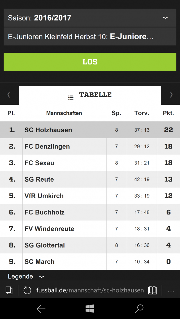 Zum letzten Spiel in der Herbstrunde, trafen sich der VfR Umkirch und der SC Holzhausen auf dem Sportgelände in Umkirch. Auf einem tiefen und schweren Rasenplatz wurde von Anfang an klar das es heute kein besonders gutes aber dafür anstrengendes und laufstarkes Spiel geben wird. Gleich von Anfang an wurde auf dem kleinen Rasenplatz von beiden Mannschaften nach vorne gespielt und so kam es durch eine starke Einzelleistung von Tim Vogel auf der rechten Seite der seine Mannen mit 1:0 in Führung brachte. Danach gaben die Jungs des SC H leider das Spiel aus der Hand und so kam die Umkirch innerhalb von 5 Minuten zu einer 2:1 Führung. Nach der schnellen Antwort zum 2:2 durch Nils Hofmeister und einer energischen Leistung von Maximilian Villim zum 2:3 wurden die Seiten gewechselt. Mit einer entsprechenden " Ansprache " in der Halbzeitpause kamen unsere Jungs mit einer anderen und richtigen Einstellung auf den Platz zurück. Wiederum durch Tore von Nils Hofmeister ( 2:4 ) und Maximilian Villim ( 2:5 ) schraubten der SC Holzhausen das Ergebnis auf 2:5. Kurz vor Schluss erzielten die Umkirch noch das 3:5 was unsere Junge doch wieder etwas ins Schwimmen brachte aber durch eine fabelhafte Mannschaftsleistung in der zweiten Halbzeit hat man das erreicht von dem niemand noch vor der Runde auch nur im Ansatz dran geglaubte hätte, man hat die " Herbstrunde " mit 8 Siegen und einem Unentschieden als Tabellenerster abgeschlossen. Wir Trainer bedanken uns bei unserem tollen und klasse Team.