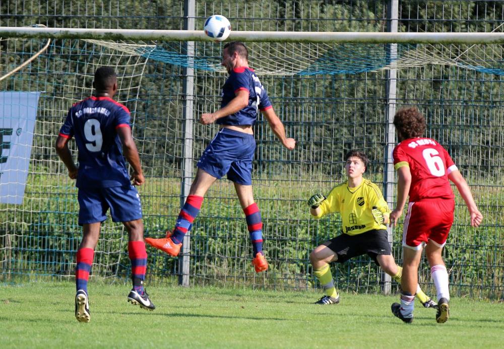 Kurz vor Ende der ersten Halbzeit ein Freistoß im Halbfeld für Holzhausen. Diesen trat Joachim Bott für das Gästetor und erneut beanspruchte Danny Günther die Lufthoheit für sich und bugsierte den Ball zum 2:0 ins Netz. Torwart Benno Bullert hatte zwar noch die Fingerspitzen dran konnte den Ball jedoch nicht mehr abwehren.