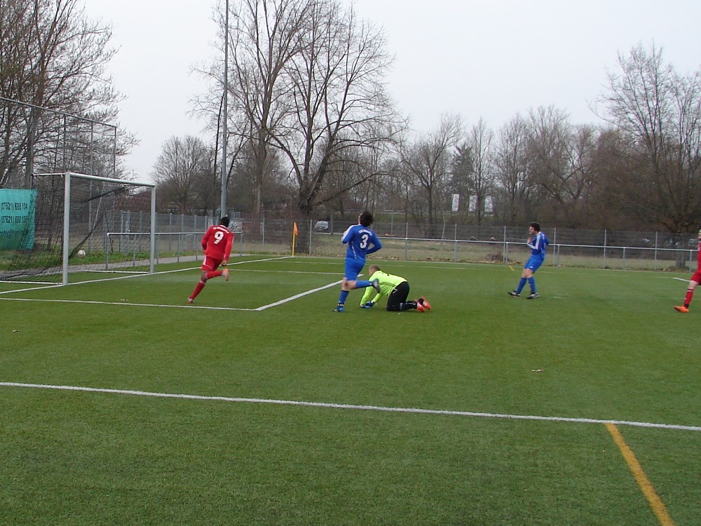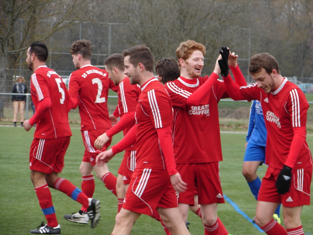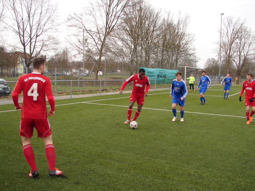 Beide Mannschaften starteten nach der langen Winterpause mit hohem Tempo in die Partie. Holzhausen brauchte etwas Zeit um sich zu ordnen. Nach seiner guten Vorbereitung gehörte Yannick Kunz erstmalig in dieser Saison zum Kader der I. Mannschaft. Dieser versuchte mit hohem Engagement das Vertrauen des Trainers zu rechtfertigen und holte in der 8. Minute einen Freistoß im Halbfeld heraus. Diesen Flankte Elias Maier auf den langen Pfosten und Kunz verwandelte per Kopf zum Führungstreffer.