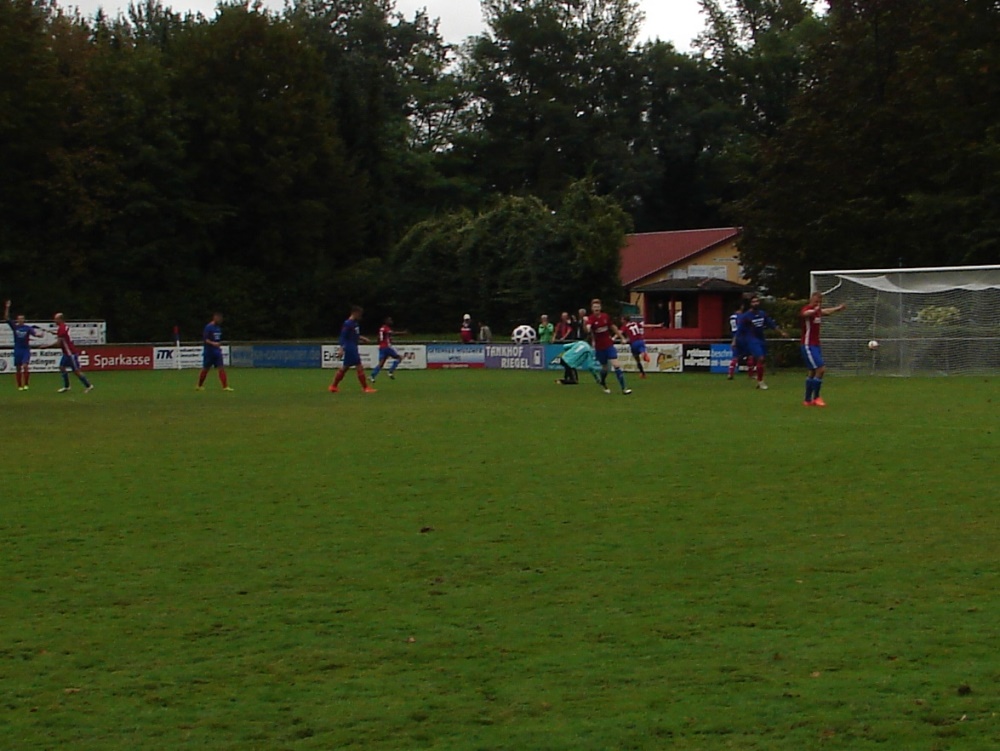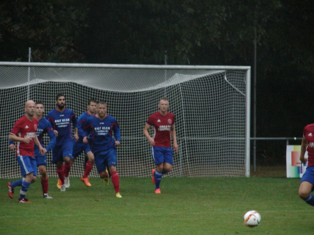 Nun versuchte auch die Heimelf zum Torerfolg zu kommen, setzte zunächst die Bälle jedoch neben das Gehäuse. Erst in der 50. Minute der Anschlusstreffer mit einem präzisen Schuss in den Winkel. Nun kämpften beide Mannschaften verbissen um jeden Ball. Der Rasen durch den einsetzenden Regen nun schwer zu bespielen.