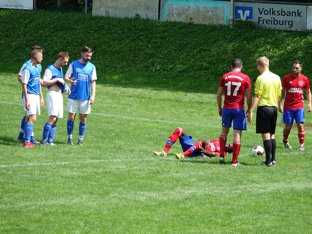 Kurz vor der Pause ein Pfostenschuss vom agilen Nico Karlin und praktisch mit dem Halbzeitpfiff der einzige Angriff der Heimelf. Begünstigt durch eine Holzhauser Nachlässigkeit kam der Gegner in Schussposition und erzielte den Ausgleich.