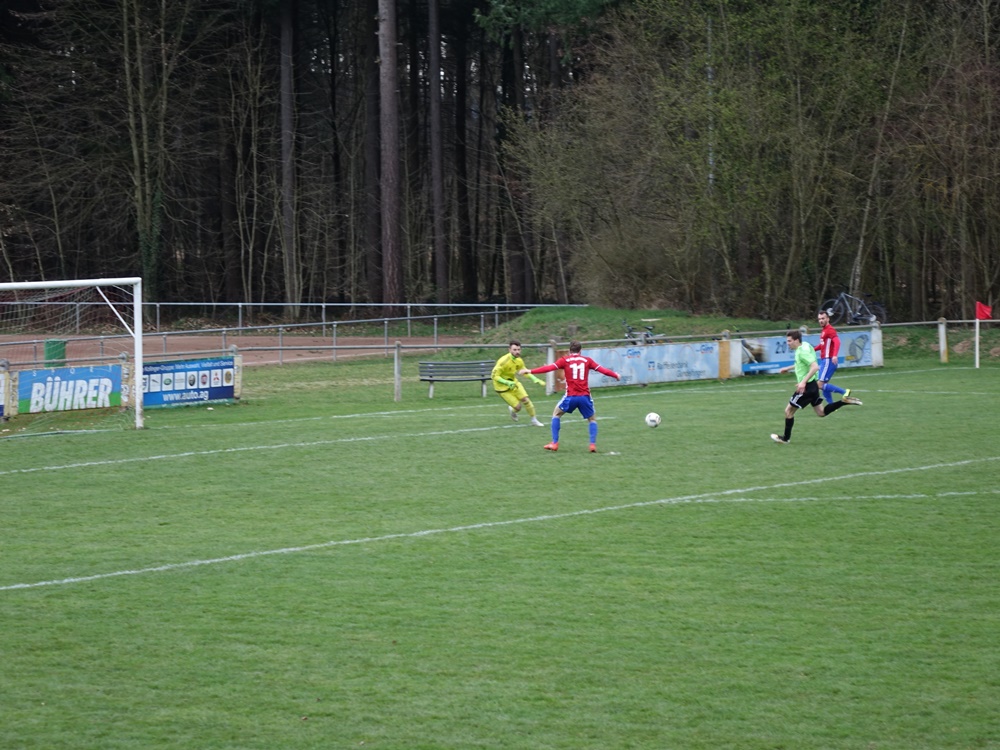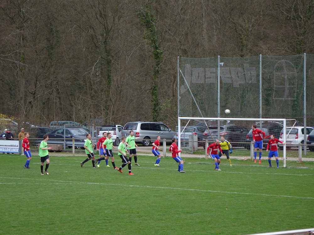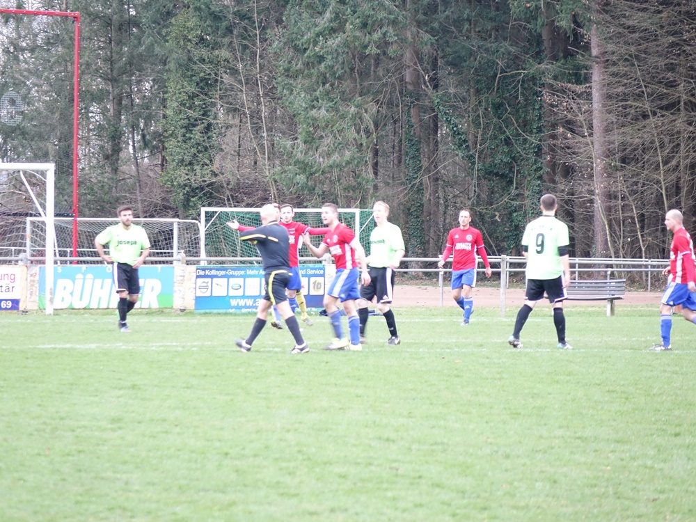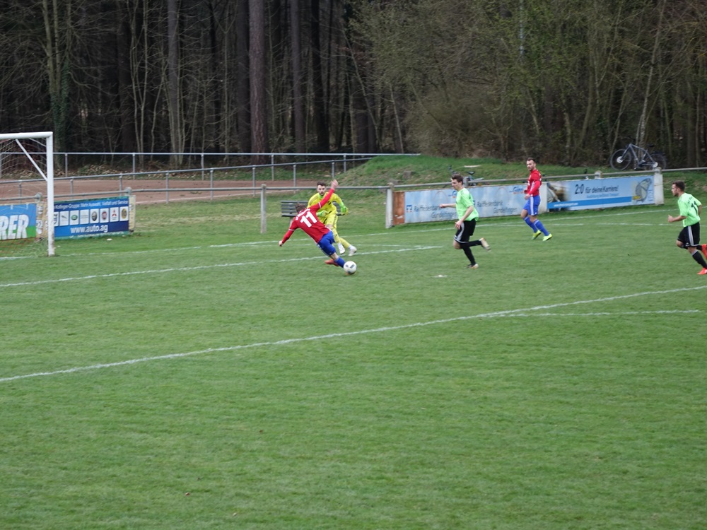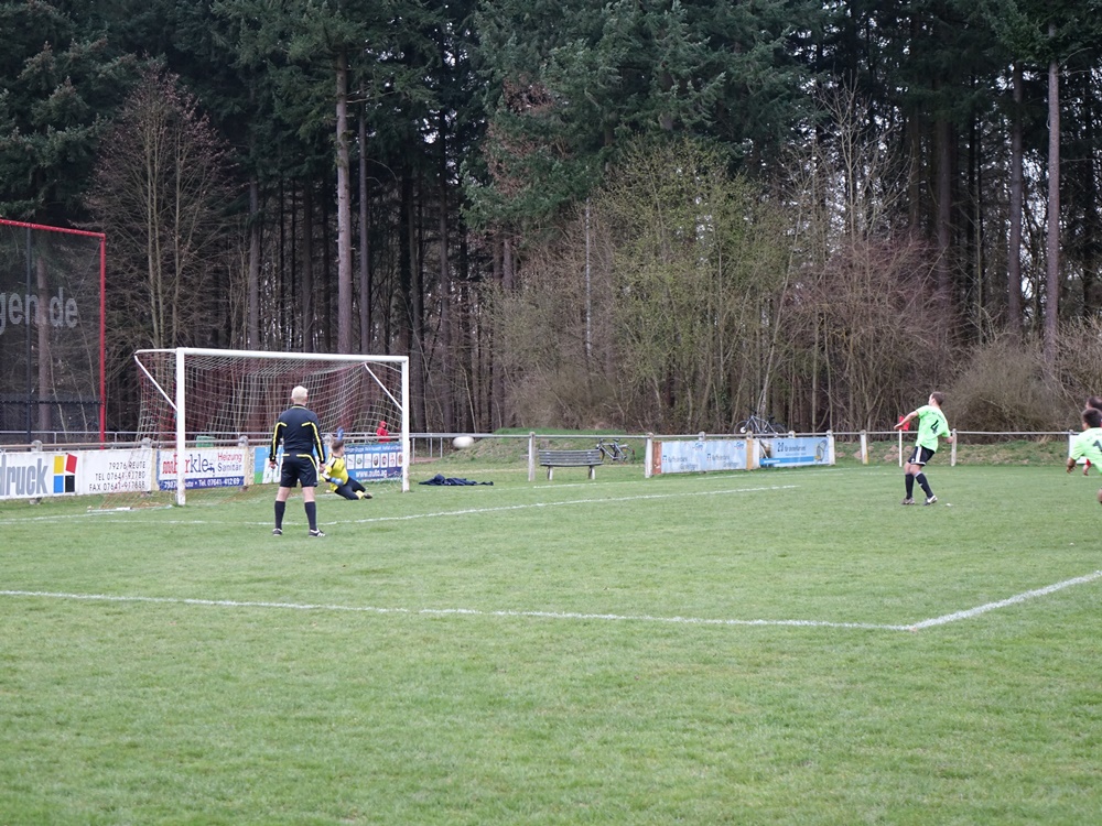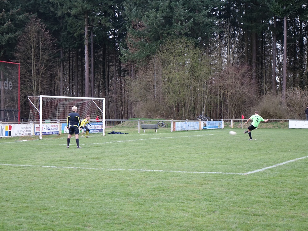 Erst ein unglücklicher Ball im Strafraum durch einen Gästeverteidiger und ein Elfmeterpfiff brachte die Heimelf wieder ins Spiel. Matthias Wunderle ließ Schlussmann Kaltenbach keine Chance.