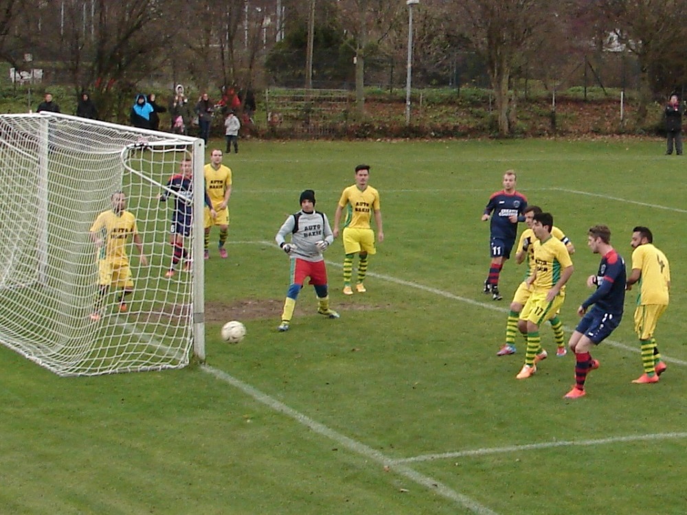 Die Spieler des FC Mezepotamien leisteten in der Anfangszeit jedoch erhebliche Gegenwehr und versuchten die Gäste nicht ins Spiel kommen zu lassen. Nach 15 Minuten musste Torwart Bernd Schrodi in letzter Sekunde im eins gegen eins die Chance zur Führung der Heimelf vereiteln. Dies war aber auch die Initialzündung für den Tabellenführer. Jimoh Ibrahim legte geschickt auf halbrechts auf Philipp Irmler der aus 18 Meter den Ball im Netz versenken konnte. Nun reihten sich einige Chancen der Gäste aneinander. Unter anderem rauschte Leonard Wedekind nur Zentimeter am Ball vorbei als alle Gegner bereits geschlagen waren. Holzhausen ackerte und bemühte sich, aber erst einige Minuten vor dem Halbzeitpfiff wurde die Mühe belohnt. Fabian Weber wurde von den Beinen geholt und Ibrahim ließ sich nicht bitten und erzielte per Strafstoss das 0:2 und wenige Minuten später das 0:3, womit dann die Seiten gewechselt wurden.