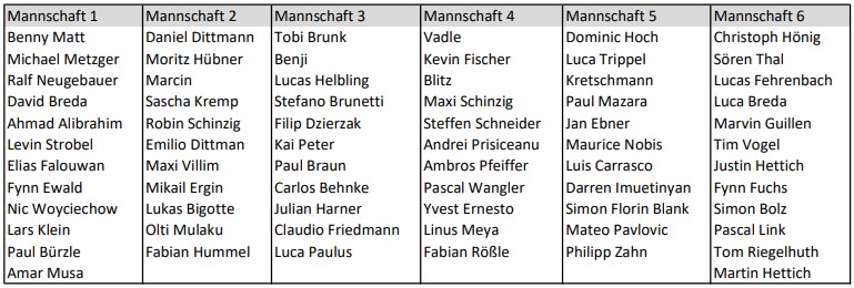 Das Turnier wurde anschließend weitergeführt. Die Spieler von jung bis alt versuchten ihr bestes um Tore zu schießen, um Tore zu verhindern und die Spiele für sich zu entschieden. Aus dem ersten Spieltagging Mannschaft 4 um Spielführer Joachim Bott mit drei Siegen als Favorit in den nächsten Spieltag.