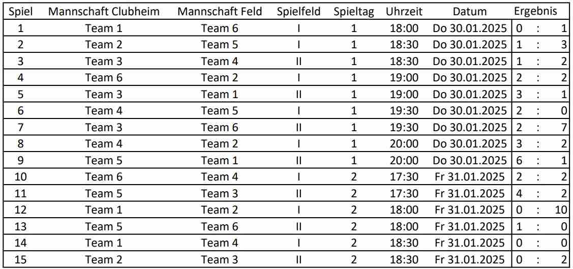 In der Woche vom 27.01 - 31.01. wurde traditionell das Kleinfeldturnier auf unserem Vereinsgelände ausgetragen. Man versuchte sich dieses Jahr an einem Austragungsmodus der auf Donnerstag und Freitag begrenzt war.