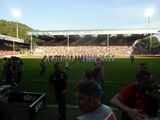 Punkt 18.30 Uhr durften unsere E-Jugendkicker die Profis beider Mannschaften zum Anstoßpunkt begleiten und hierbei vor 21.900 Zuschauern Bundesligaatmosphäre schnuppern. Nach dieses tollen Erlebnis durfte man die Partie von der Osttribüne aus, ausgestattet mit Getränke und Speisegutscheinen, mitverfolgen.