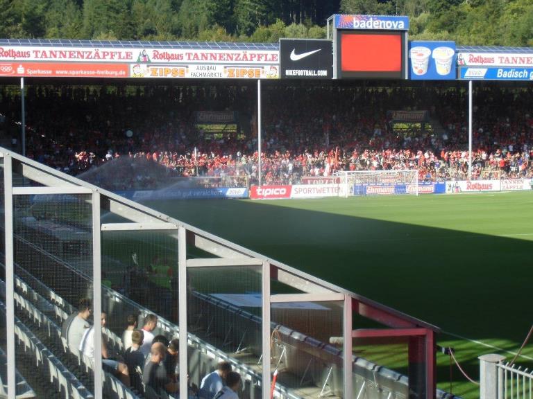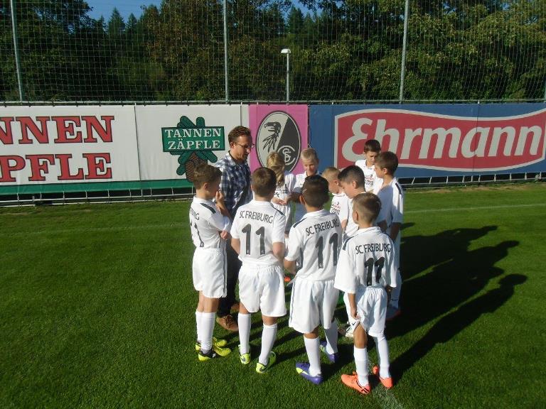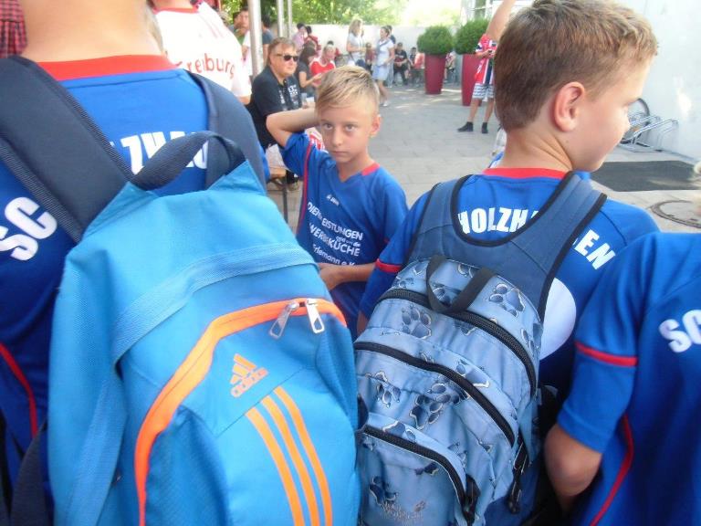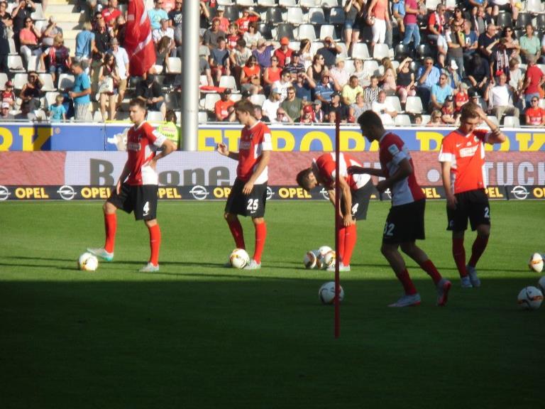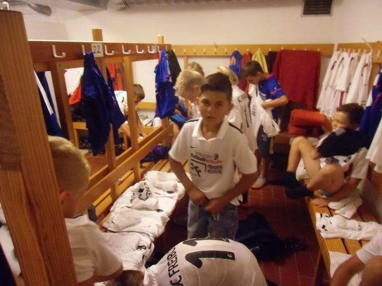 ……………………..war die E-Jugend (Urlaubsbedingt „verstärkt“ durch drei letztjährige E-Jugendkicker) des SC Holzhausen beim Spiel der zweiten Fußball Bundesliga zwischen dem SC Freiburg und dem SV Sandhausen am Freitagabend, 28.08.15.