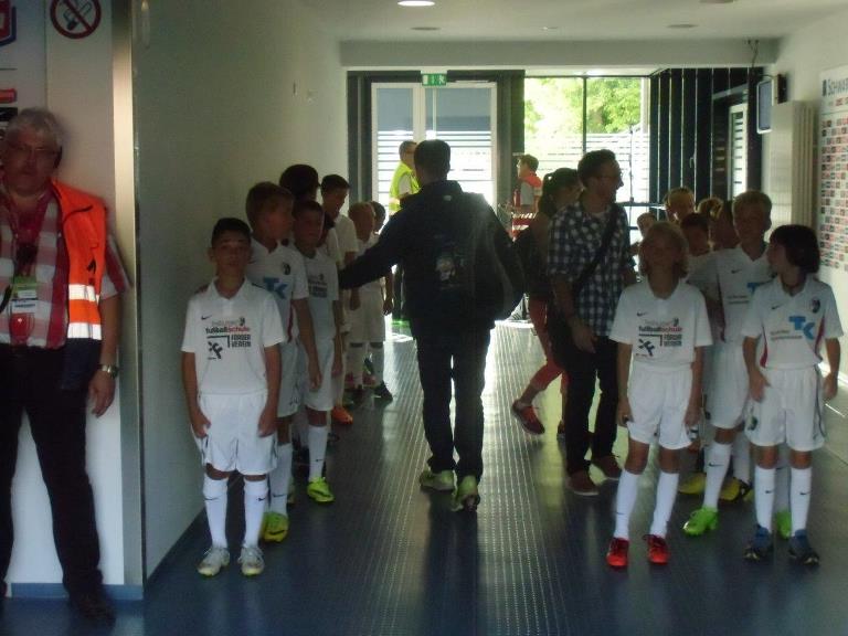 Hier bei ein ganz besonderer Dank an den dortigen Verantwortlichen Tobias Rauber, der die Jungs vorab auf die bevorstehende Aufgabe einstimmte und trotz klarer und deutlicher Erklärung der „Spielregeln“ (in Bezug auf das Einlaufen mit den Profis) immer den Spaß und das Erlebnis in den Vordergrund stellte. Ein absolut tolles Erlebnis für die Jungs, und natürlich auch die Betreuer!