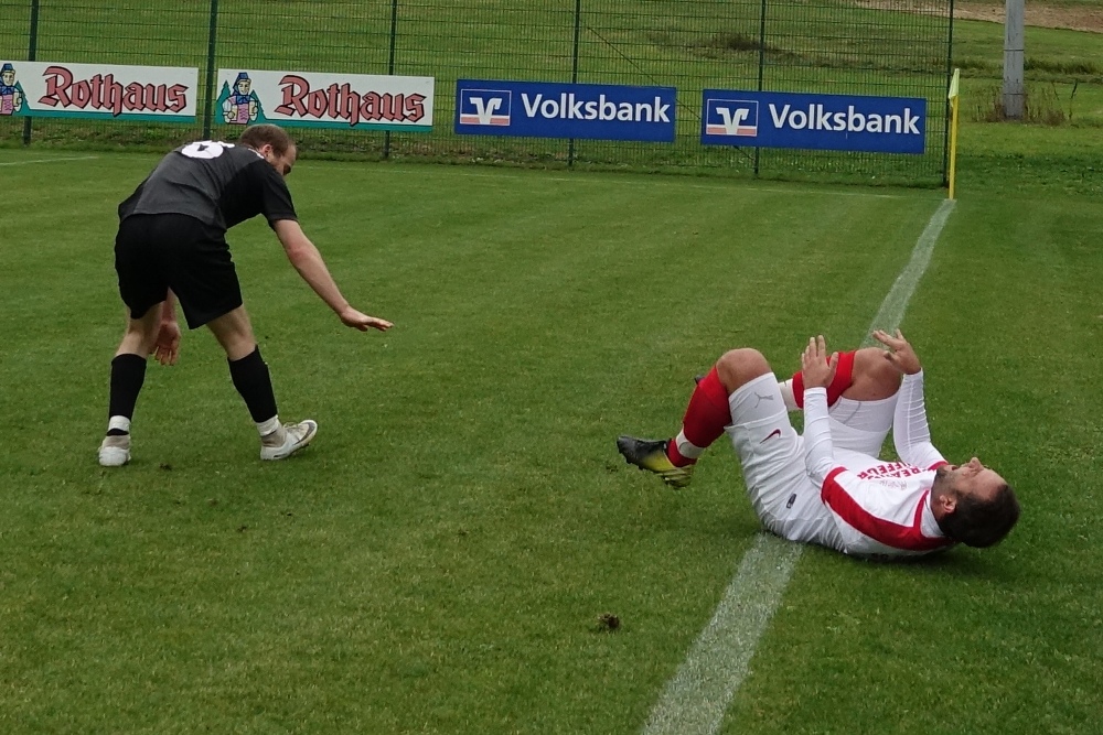 In Halbzeit zwei ein ähnliches Bild. Einzelne Konter der Gäste, wütende aber ungefährliche Angriffe der Heimelf. Vor allem die Routiniers Joachim Bott und David Grundel spielten ihre Erfahrung aus.