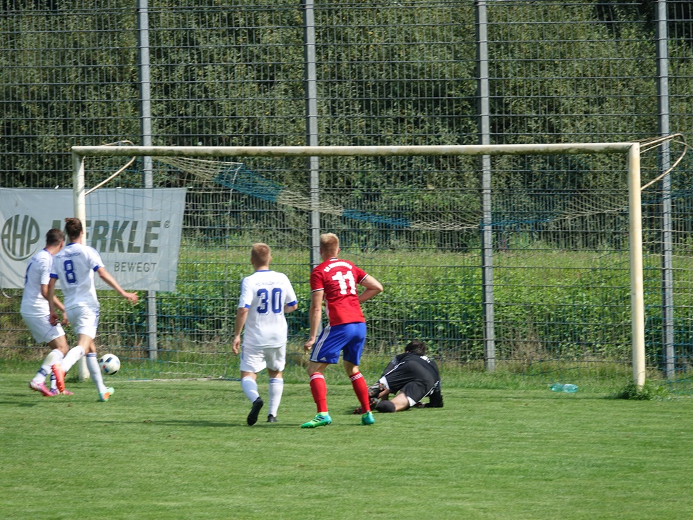 Zum Happy End kamen die Hausherren erst in der Nachspielzeit, als David Grundel 20 Meter vor dem Tor freigespielt werden konnte und abzog. David Glätte im Tor der Gäste, dem die Sicht versperrt war, sah den Ball recht spät und konnte nicht mehr entscheidend eingreifen.