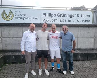 Für besondere Atmosphäre sorgte die Rückkehr von Benny Matt, Trainer des ESV Freiburg, an seine alte Wirkungsstätte. Der ehemalige Leistungsträger der aktiven Mannschaft des SC Holzhausen und heutige AH-Spieler ist dem Verein weiterhin eng verbunden. Nach der Partie blieb Zeit für ein gemütliches Beisammensein mit seinen langjährigen Freunden Philipp Grüninger und Oliver Rath – ein schöner Abschluss eines rundum gelungenen Fußballabends.