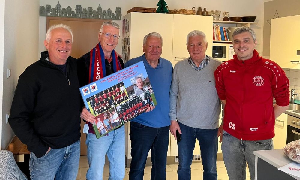 Am Montag (13.04.26) besuchten ihn seine alten Weggefährten Rolf Schweizer, Otmar und Gerhard Waibel. Selbstverständlich ließen es sich der stellv. Vorstandsvorsitzender Christian Schweizer sowie Sebastian Metzger vom Förderverein nicht nehmen ebenfalls ihre Grüße und Glückwünsche zu überbringen.