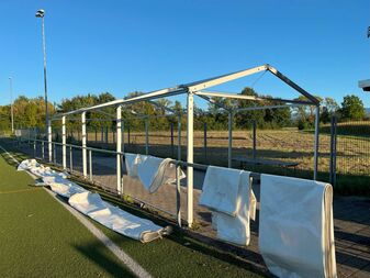 Zukünftig können unsere Zuschauer und Fans also wieder geschützt vor Wind und Regen die Spiele auf dem Kunstrasen verfolgen.