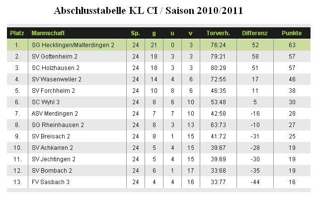 Tabelle Kreisliga C Staffel I 2010 / 2011
