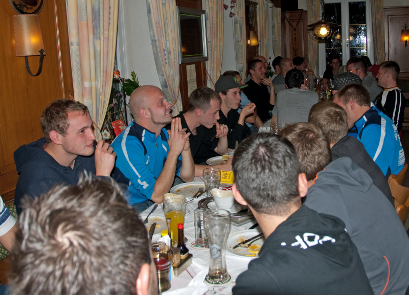Nach den Auswärtsspielen in Breisach trafen sich Mannschaft und Aktivenverantwortliche zum gemeinsamen Essen im Gasthaus zum Adler. Bestens bewirtet und gestärkt haben sich die Spieler auf die kommenden Aufgaben vorbereitet.