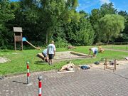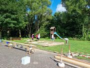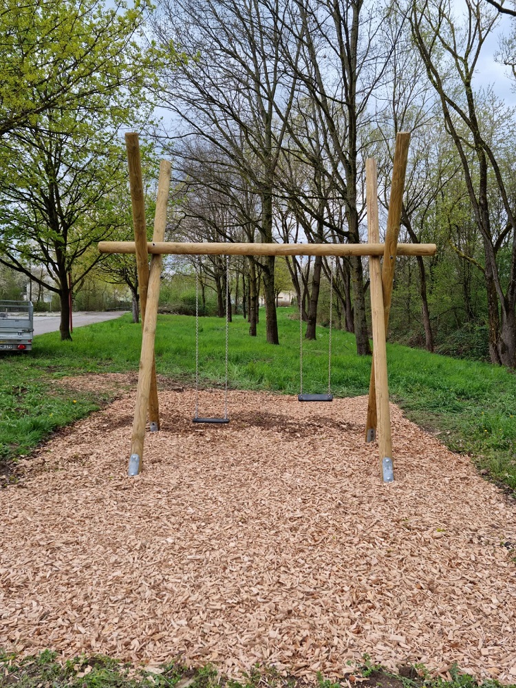 Unter Bauleitung von Olli Rath wurde die Schaukel montiert, der Auslaufbereich erweitert und aufgefüllt. Außerdem wurde der Turm der Rutsche abgeschliffen und Instand gesetzt.