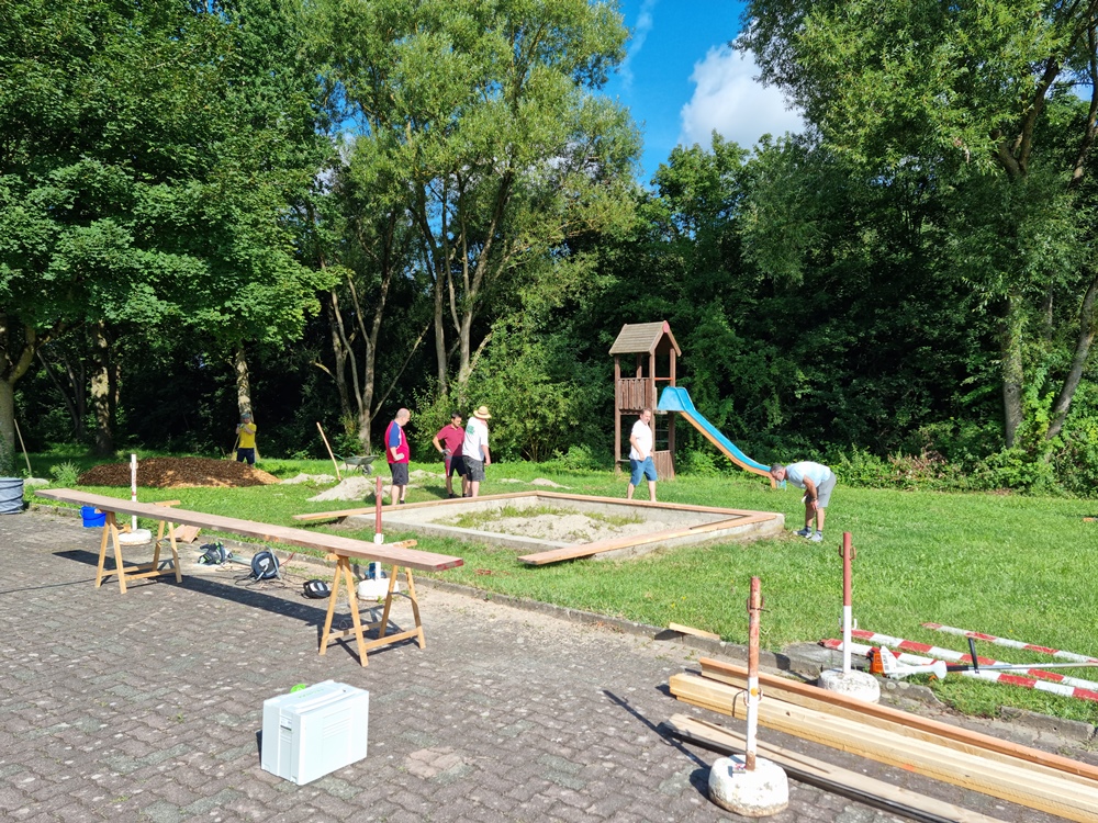 Am Samstag, den 09.04.2022 wurde bei einem Arbeitseinsatz durch den Förderverein das Bauprojekt am Spielplatz weiter gestaltet.