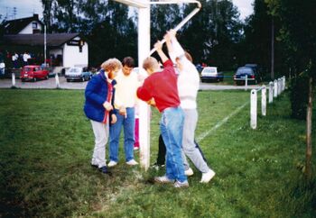 Hier nach einem Arbeitseinsatz Anfang der 1990 er Jahre im neuen Clubheim.