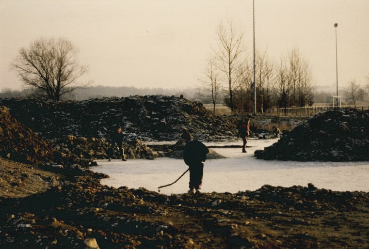 Auch der Bolzplatz wurde in ehrenamtlicher Arbeit angelegt. Anfang der 1990er Jahre war dieser noch geeignet um Eishockey zu spielen.